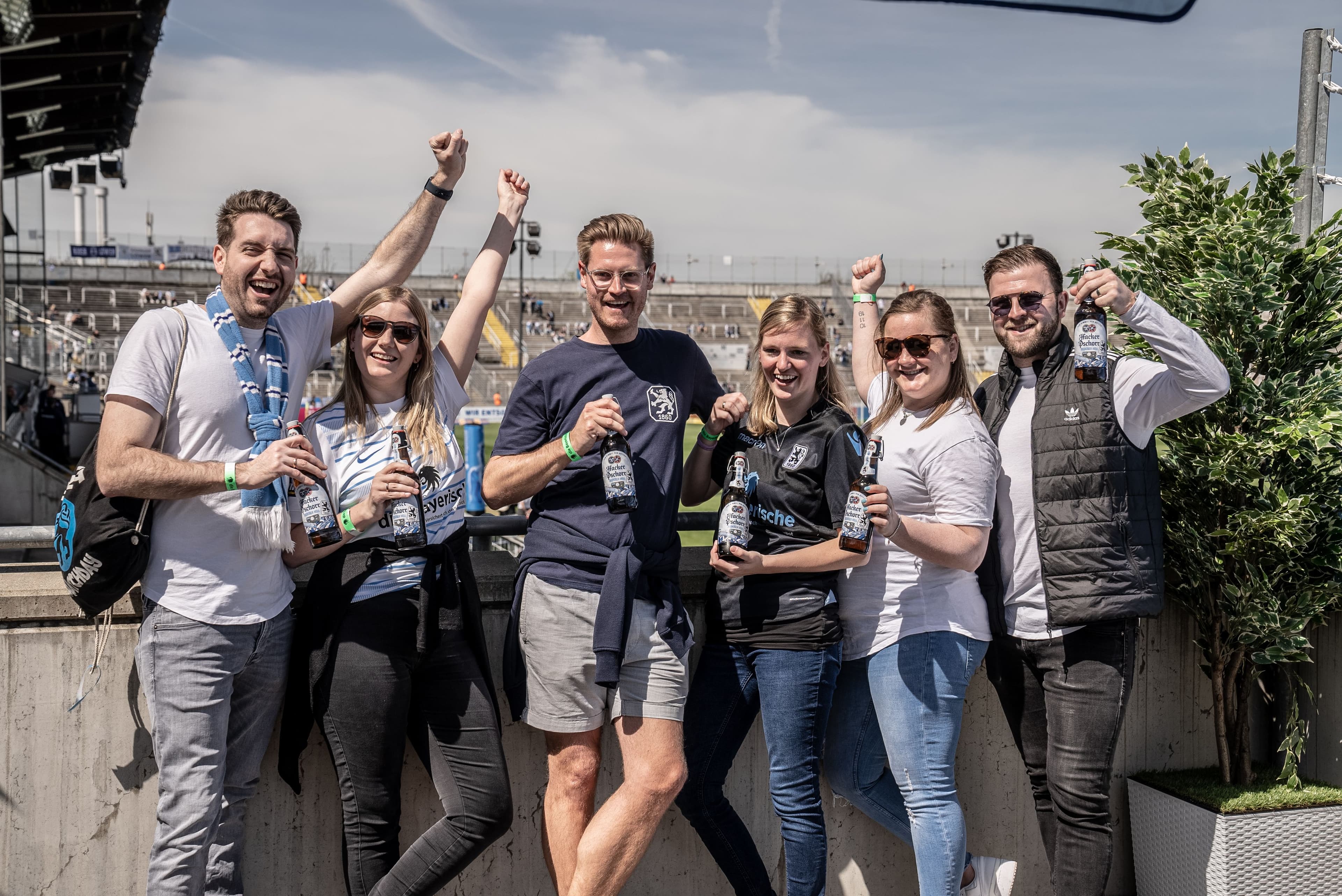 Perfekter Blick aufs Spielfeld von der Dachterrasse im Gründwalder, dazu das limitierte „Sechzger Hell“ und den VIP-Service durch Hacker-Pschorr beim Heimspiel der Sechzger – das ist der Traum für alle echten Löwen-Fans. Anne-Kathrin L. aus München hatte Glück und durfte als Gewinnerin mit 5 Spezln ihren Himmlischen Fan-Moment beim bayerischen Derby am 22. April gegen die Spielvereinigung Bayreuth erleben. Doch das war noch nicht alles: Oben drauf gab es für alle Trikots des TSV 1860 München, Live-Musik und VIP-Service in der Sechzger Alm, ein exklusives Meet & Greet mit einem Löwen-Star und die Teilnahme am Hacker-Pschorr Fantalk nach dem Spiel.